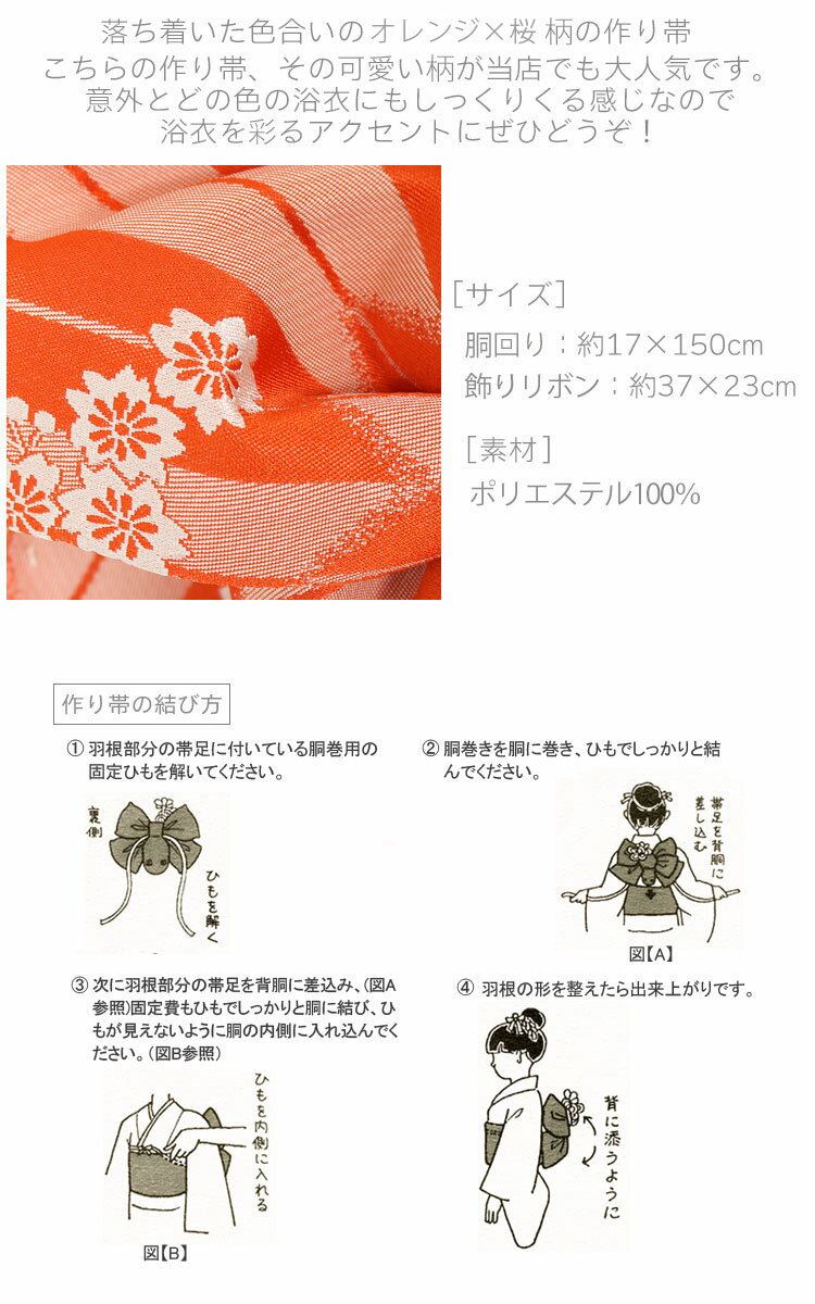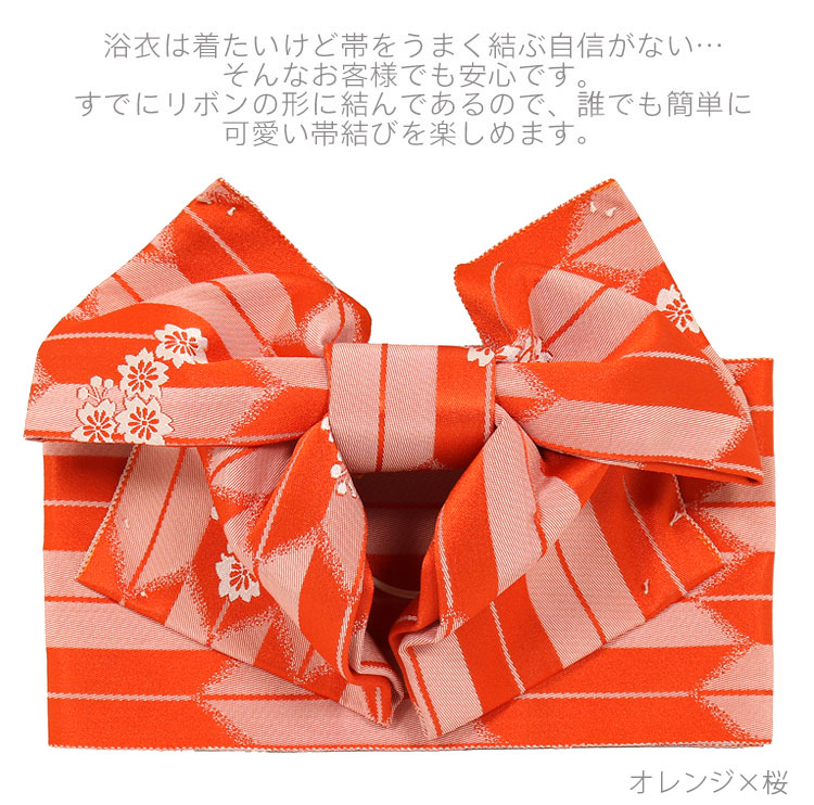 結び帯 浴衣帯 女性 作り帯 つくりおび 浴衣 帯 付帯 帯 レディース 浴衣帯 大人 オレンジ レトロ 矢絣 かわいい 5163